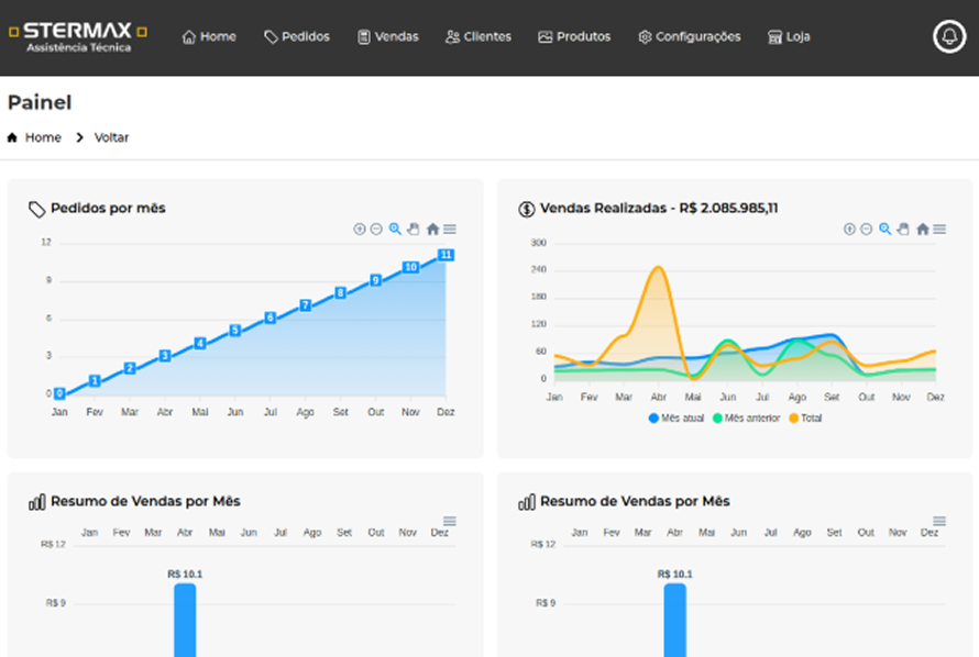O Dashboard de dados foi desenvolvido para o gerenciamento do e-commerce da Stermax, utilizando as linguagens NextJS, buscando os dados via API Rest do Woocommerce.