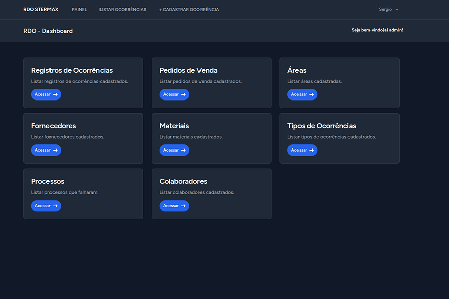 O sistema RDO foi desenvolvido com Laravel, Vuejs para o front-end e banco de dados Postgre.
